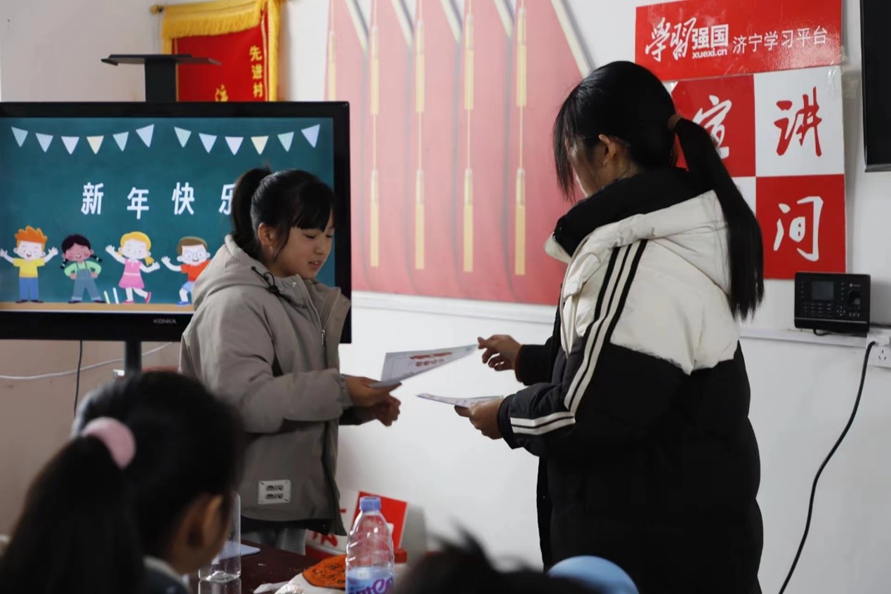 最后,团队队长刘舒玉带领团队全体成员进行庄严宣誓,并且队长刘舒玉介绍了本次支教的团队情况和教学课程安排,向在座的全体领导、孩子家长们以及孩子们表示全体成员将全力以赴,秉承“奉献、友爱、互助、进步”的志愿者精神,为当地教育事业贡献自己的力量。为保障孩子们在上课期间的安全,安全员孙鑫宇强调了安全规定,并对孩子们表达祝愿,希望孩子们在学习新知识的同时,也能够牢记安全的重要性,确保自身的安全,快乐的度过一个欢快的假期。
