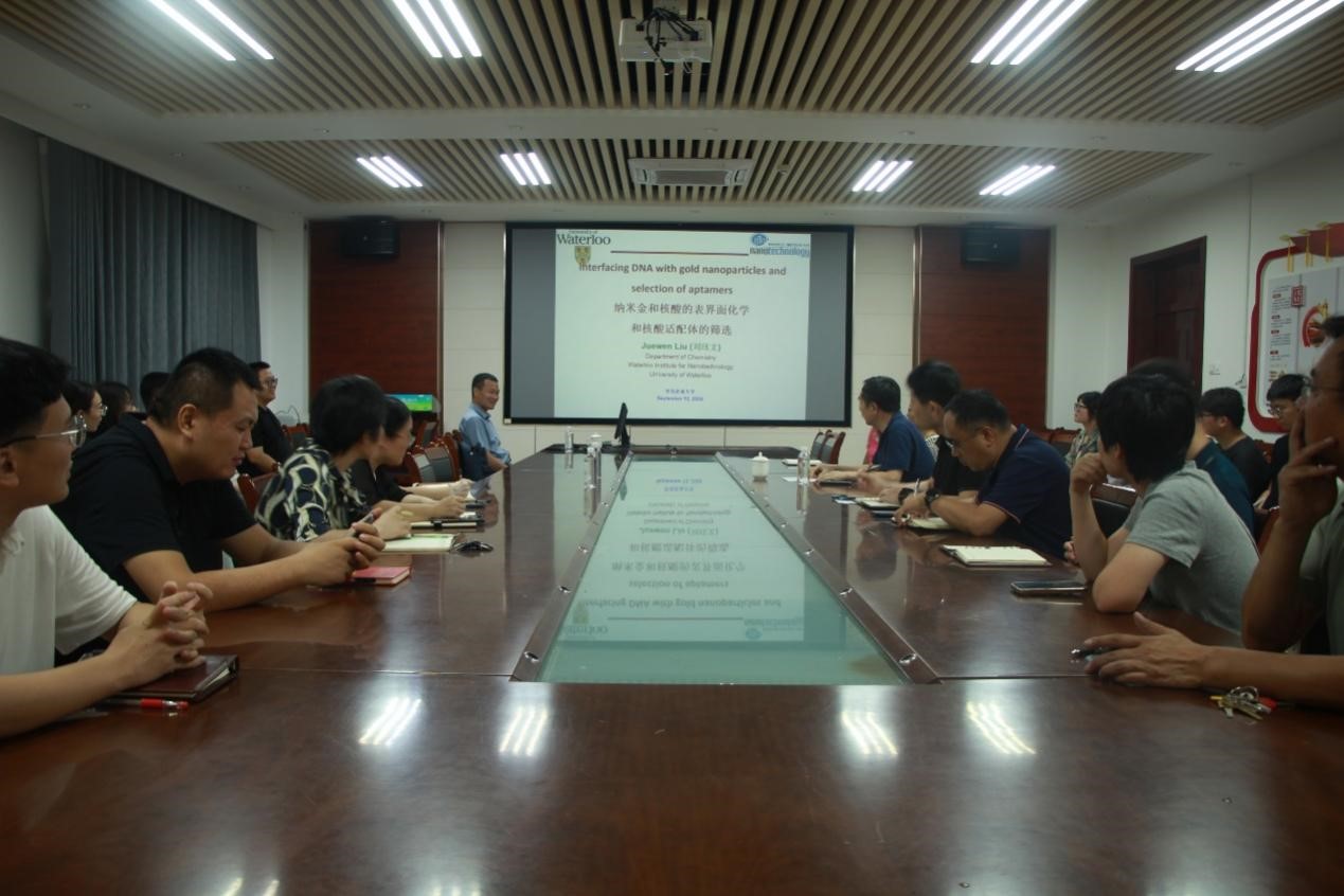报告最后,学院老师针对刘珏文教授所讲的纳米金和核酸的表界面化学及核酸适配体的筛选报告相关问题进行交流讨论并对刘珏文教授的分享表示由衷感谢。