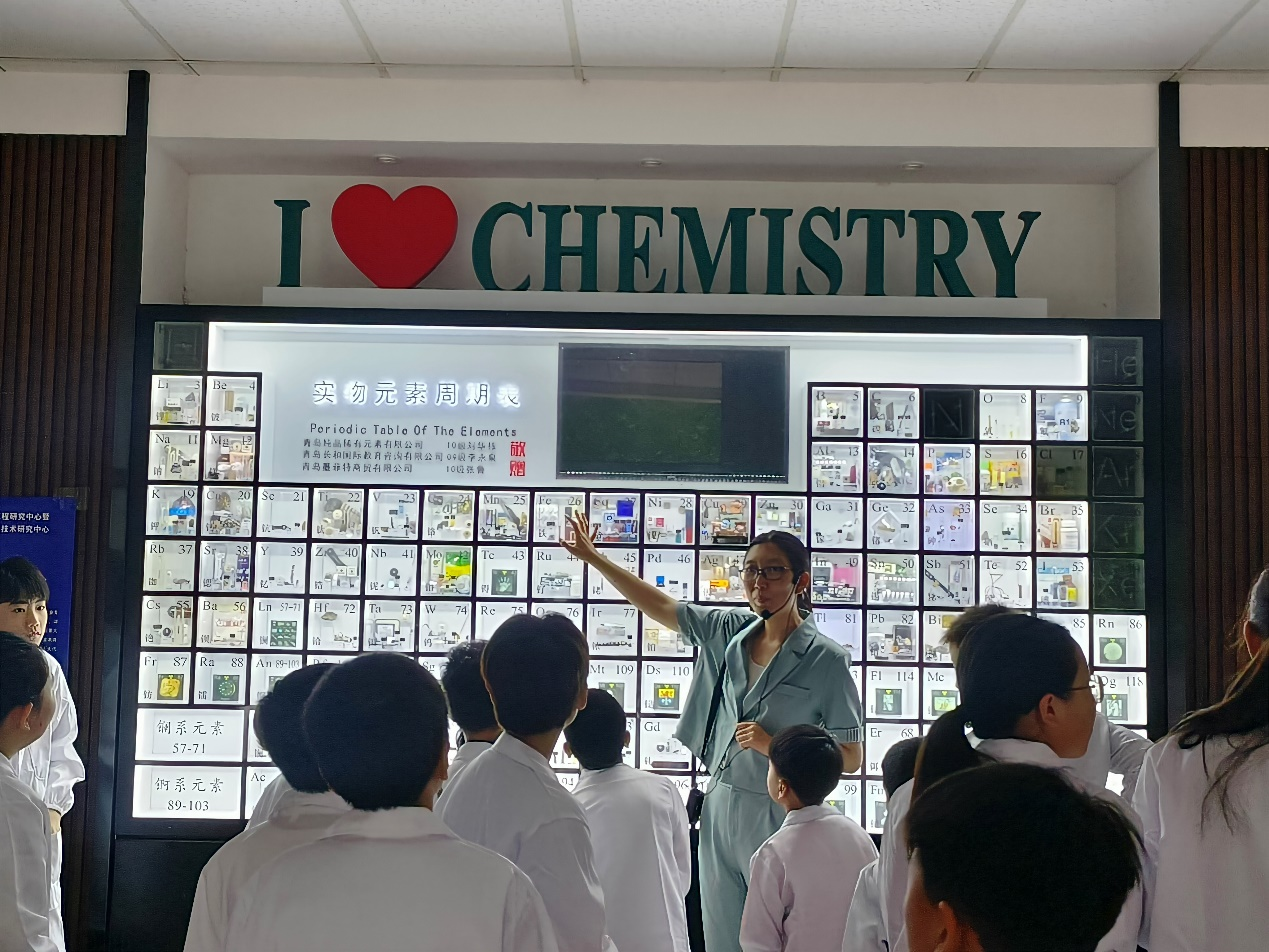 活动开始,在志愿者的引领下,由宁静老师带领孩子们参观了陈列在化学楼一楼的实物元素周期表,并就其中几个元素从生活方面进行了深刻的讲解,增强了对元素的直观认识、激发了学习兴趣、拓展了知识的视野。