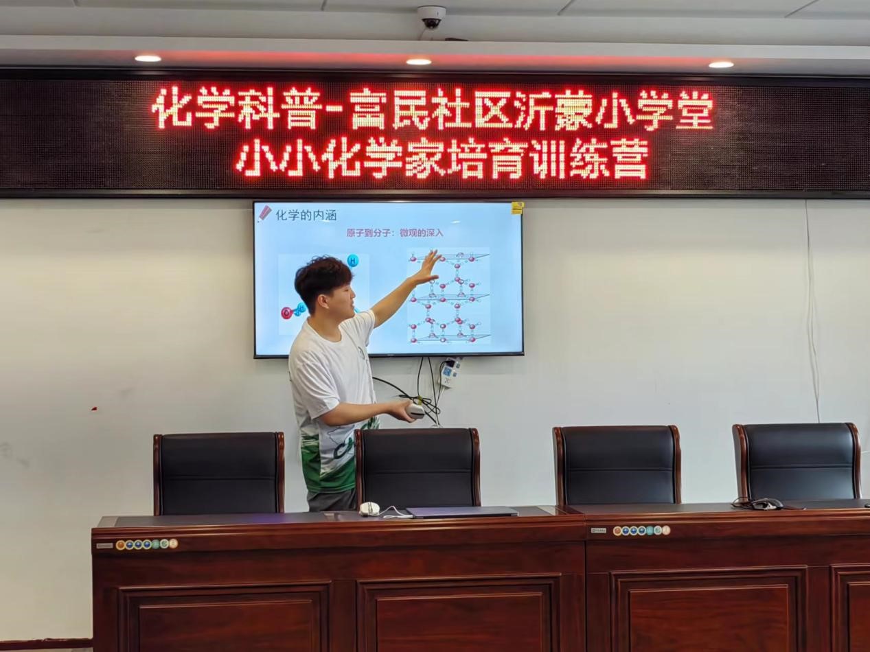 实践团队长唐力俊先向各位小朋友介绍了团队成员、团队初衷、团队期望等内容,以此来拉进了与各位小朋友之间的距离。紧接着,通过生动的语言讲解了化学是什么、什么是化学元素,让各位小朋友对化学产生浓厚的兴趣,起好了一个非常完美的开头。
