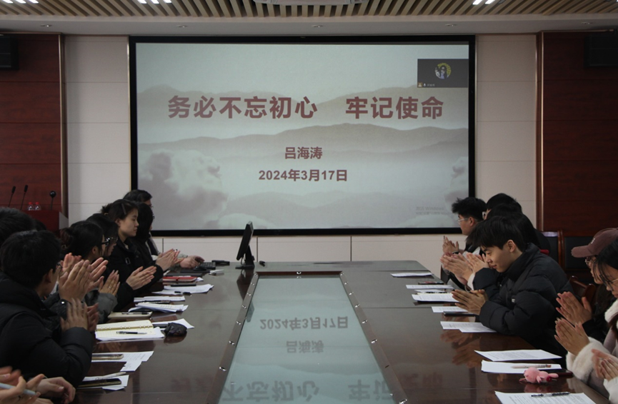 3月17日,学院专职组织员吕海涛于化学楼207为第五党支部师生讲授春季学期“开学第一课”。吕海涛以“不忘初心、牢记使命”为题,对支部党员做出三点要求:一是不忘初心,方得始终,要始终牢记为人民谋幸福,为民族谋复兴是中国共产党的初心和使命;二是理解矛盾,牢记使命,理解 “十个明确”“十四个坚持”“十三个方面成就”的含义,增强“四个意识”、坚定“四个自信”、做到“两个拥护”;三是培育特色,争先创优。要做到信念过硬,对党忠诚,做到政治过硬,担当作为,做到责任过硬。