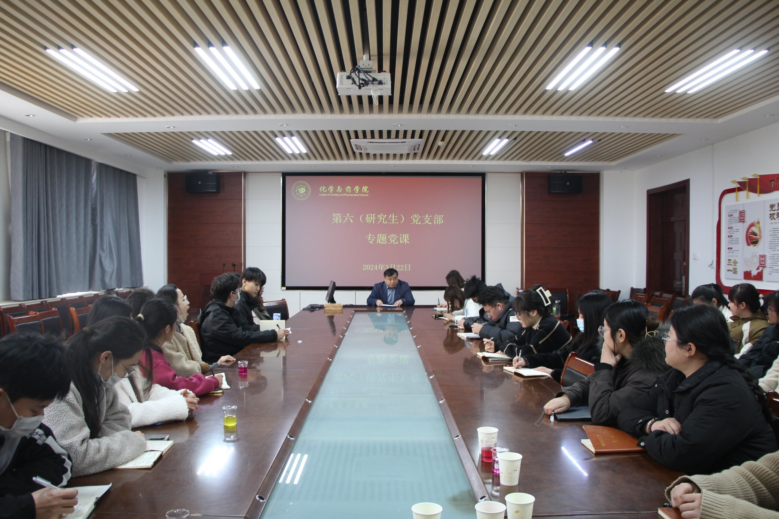 3月22日,学院副院长徐鲁斌于化学楼207为研究生党支部讲授春季学期“开学第一课”。徐鲁斌以两会精神为切入点,从国内生产总值、现代化产业体系建设、科技创新、改革开放程度、安全发展基础等方面总结了过去一年祖国的发展成就,强调了党的二十大理论学习和实践的重要性。同时详细列举了两会政府工作报告提到的积极培养发展新兴产业和未来产业,如生物制造,新材料,半导体材料硅片等。以深入浅出的方式,讲解了当前国内的政治、经济和社会形势,以及研究生在这一背景下的责任和使命,将同学们的成长历程同党和国家发展进程相联系,鼓励同学们努力提升自己的学术水平和综合素质,与祖国发展、党的事业同向同行。