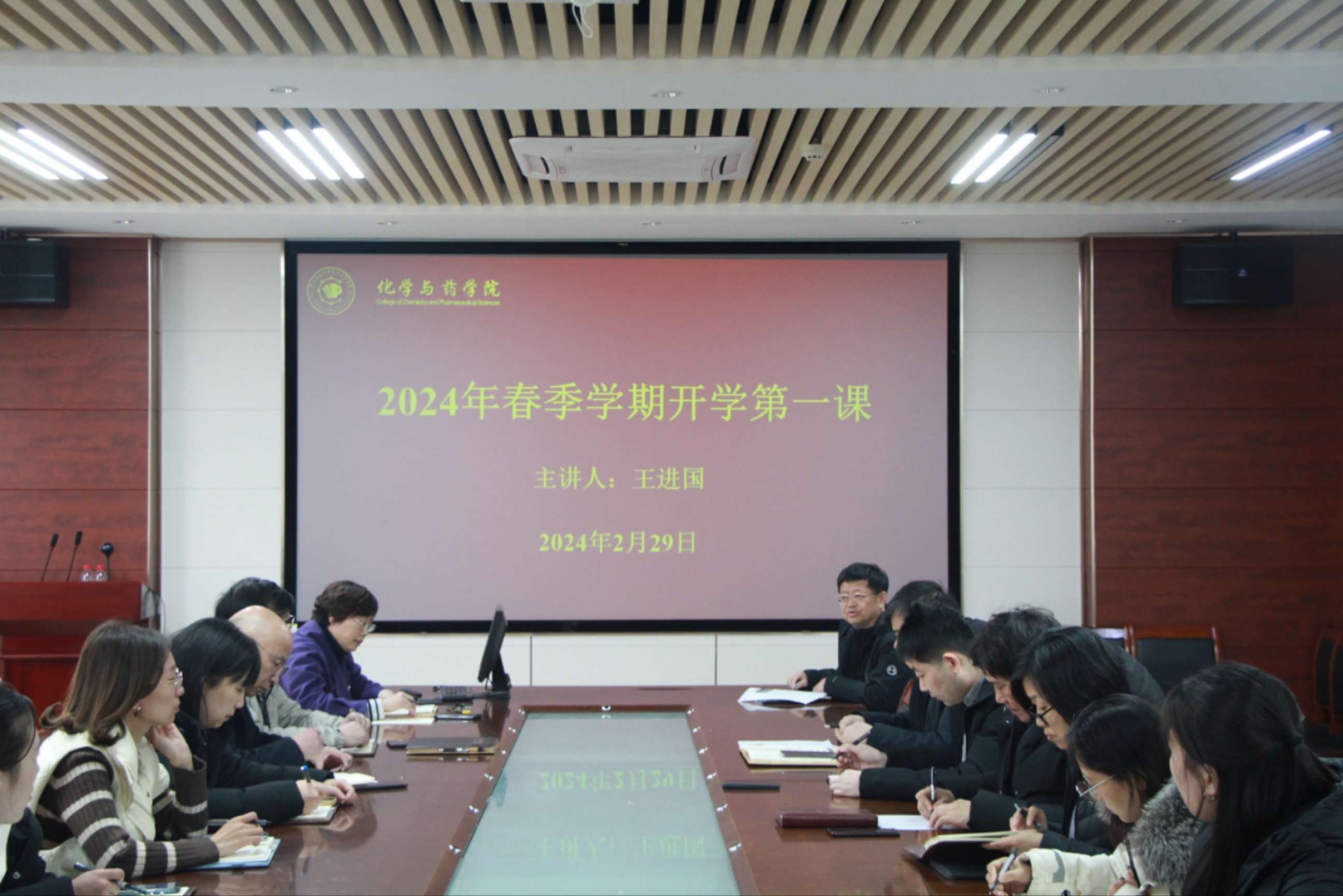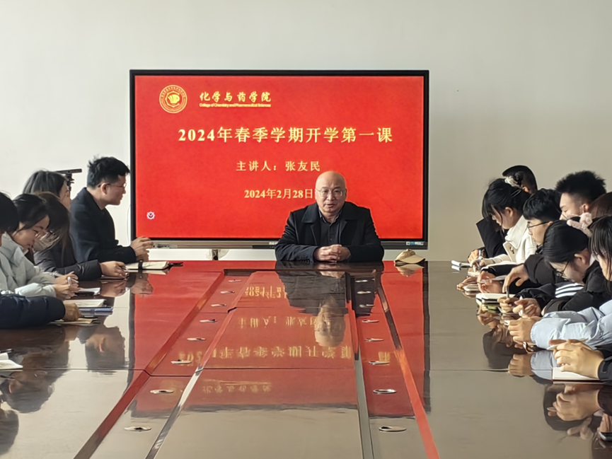 2月29日,学院党委书记王进国于化学楼207召开2024年教职工春季学期 “开学第一课”。王进国围绕新学期工作安排从三个方面进行强调,一是绷紧“安全弦”,做好学院实验室、办公室等场所的安全隐患排查,严守安全防线;二是学院应依据“十四五”规划,明确学院发展目标及方向,力求取得更多重大奖项和成果;三是紧跟学校发展步伐,不断提升学院教学、科研及人才培养质量,做好党风、师德师风建设;四是学院要努力将科研成果转化为生产力,争取更多优势资源,做好资源配置、人才引进等方面的工作。