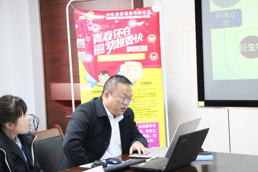 山东鲁维制药集团有限公司、山东凯盛新材料股份有限公司的企业代表分别介绍了企业的发展历程、产业特色、发展愿景、人才需求以及福利待遇等情况,并对公司本年度的招聘需求进行了详细的解说,同时热烈欢迎我院同学的加入,进一步加深院企合作。