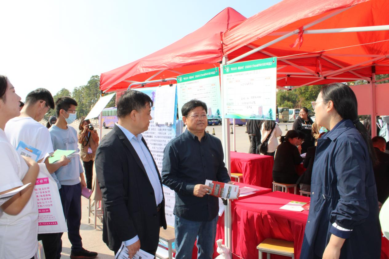 双选会现场,学院党委书记王进国与各地用人单位前来招聘的代表、校友企业代表进行交流,询问招聘岗位、毕业生投递简历等情况,充分了解招聘企业的发展方向和人才需求以及对学校人才培养的反馈和建议,希望今后能与用人单位进一步加强校企合作,为企业招聘人才的同时为毕业生提供更多优质岗位。王进国还与前来应聘的毕业生们亲切交谈,鼓励同学们多尝试、多交流,寻求最适合自己的工作岗位。
