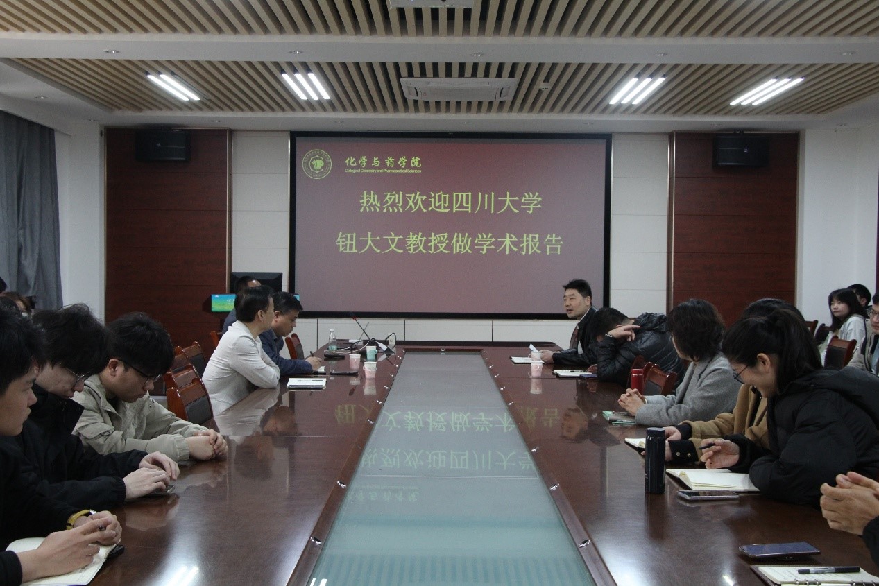 3月27日,青岛农业大学45分钟过瘾拔萝卜视频“化学+”学术论坛邀请国家杰青四川大学钮大文教授作学术报告,李帅帅教授主持,学院教师代表和研究生参加。