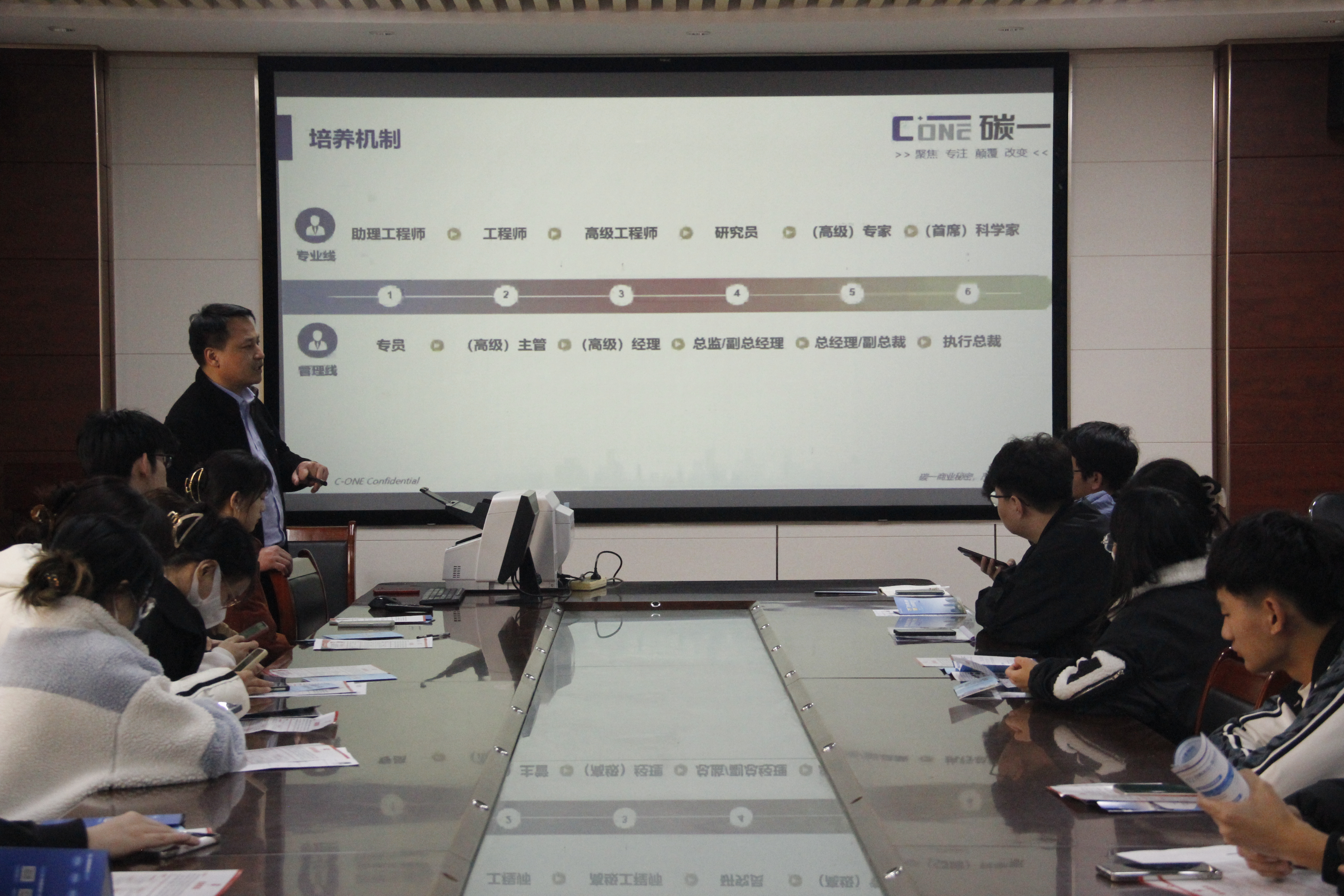 招聘会上,三家企业的招聘负责人分别通过播放企业宣传片、PPT演示为大家介绍企业发展历程、企业荣誉、企业布局、福利制度以及招聘需求等多个方面,并对公司的任职要求、就业环境等方面进行了详细介绍。随后,毕业生提出与企业相关的问题,三位代表为大家一一解答。最后毕业生递交简历,进行现场面试。