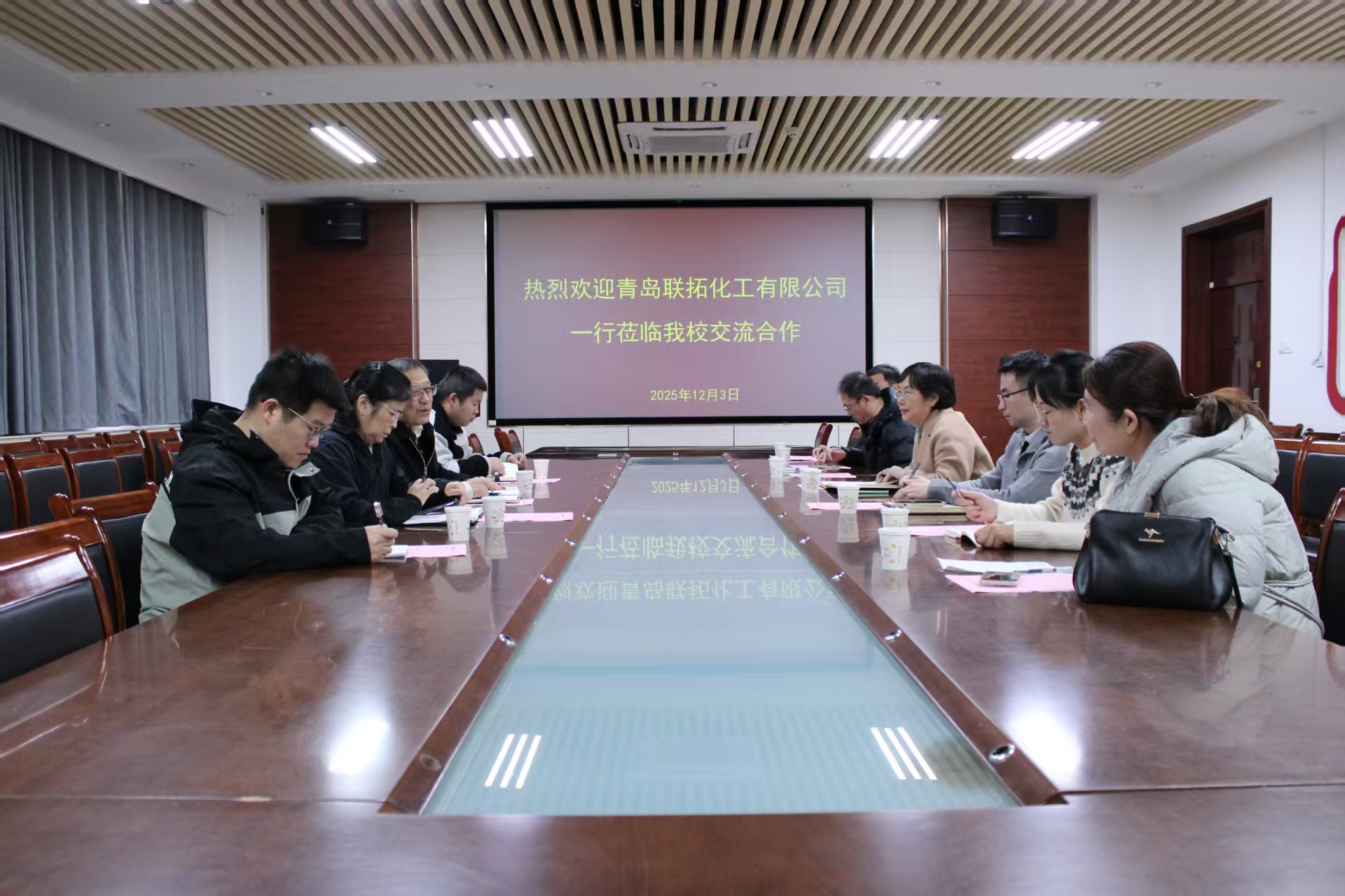 龚院长对青岛联拓化工有限公司的到来表示欢迎,并介绍了学院的基本情况以及在相关领域的研究基础,希望在人才培养、校企合作以及学生生产实习等方面加深合作交流,实现互利共赢。