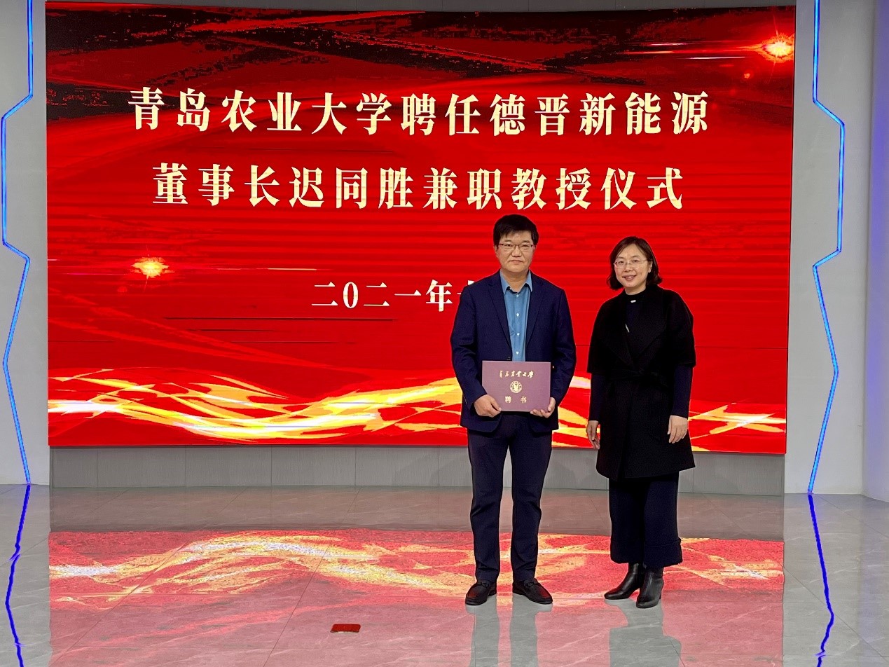 迟同胜在致辞中说,受聘为青岛农业大学兼职教授,感到非常荣幸。他表示,作为青岛农业大学的兼职教授,感到责任重大、使命光荣。在未来,自己将持续支持青岛农业大学的建设与发展,积极发挥自身所长,切实为学校发展搭建实践教学平台,竭尽全力为广大学子提供更好的发展空间,为学校的建设发展贡献力量。德晋进军新能源领域,抓住了国家战略机遇期,吸引了一大批国内锂电领域的技术人才,具有极强的科研能力和丰富的研发经验。公司将秉承“厚德载物、晋领未来”的发展理念,进一步加强校企合作,协同育人,为青岛农业大学培养有更多优秀的人才,也希望能够与学校开展科技合作,促进双向交流,未来有更多的人才加入到德晋,实现共同发展。