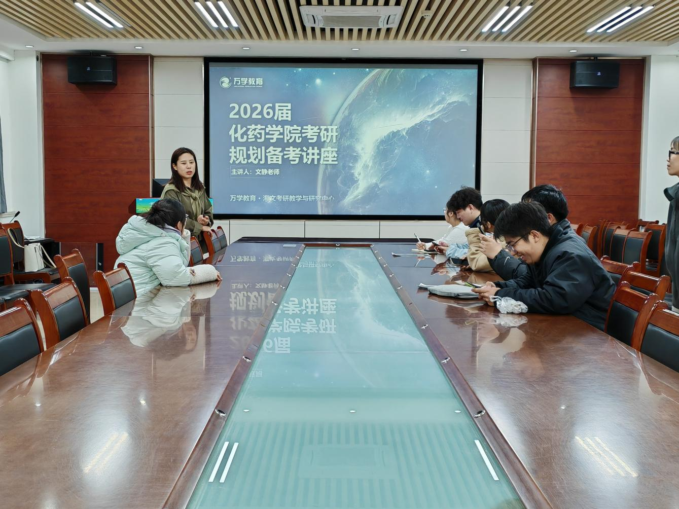 为帮助学院学生明晰考研方向,掌握科学备考方法,3月27日,青岛农业大学45分钟过瘾拔萝卜视频同万学教育在化学楼207会议室举办2026届化药学院考研规划备考讲座。本次讲座由万学教育文静老师主讲,2022级学生代表参加。