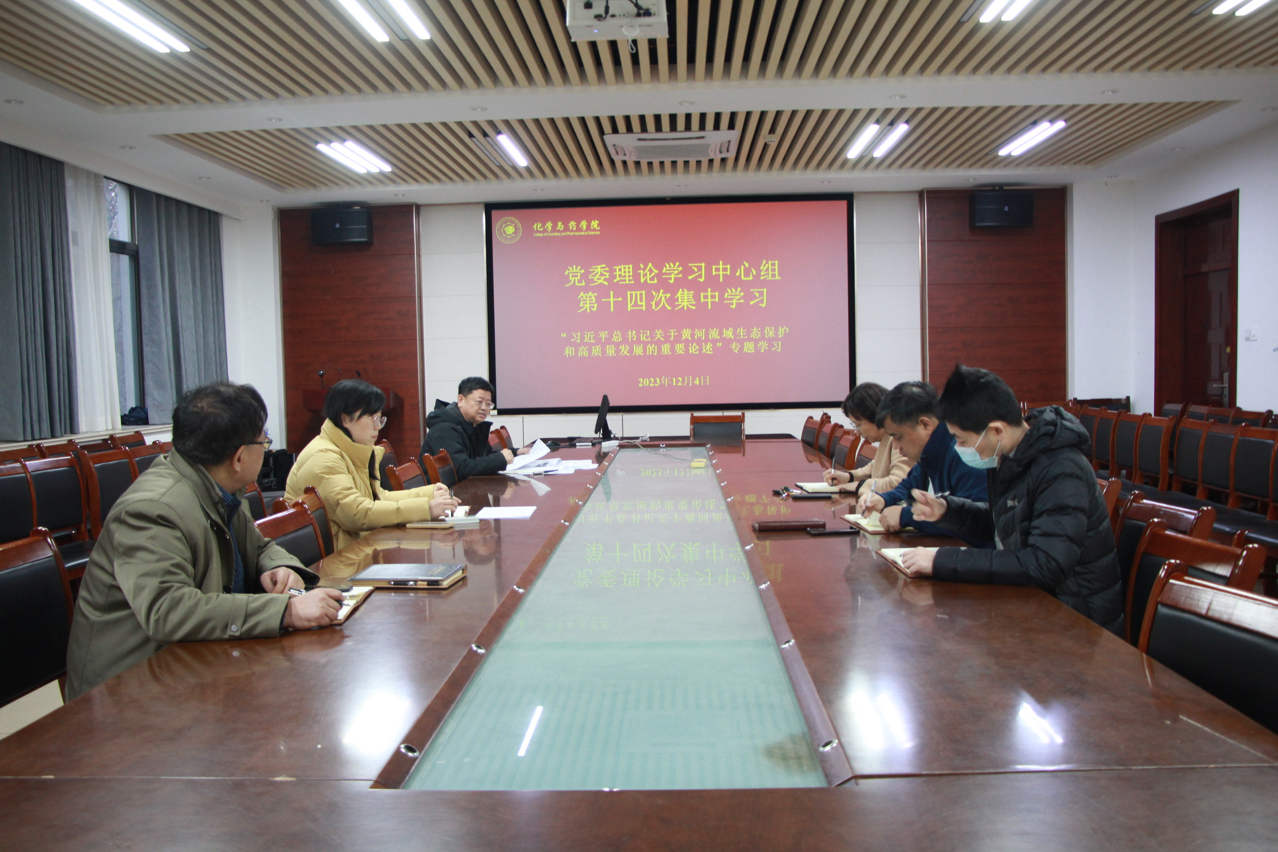 王进国结合习近平总书记在深入推动黄河流域生态保护和高质量发展座谈会上的重要讲话精神,提出三点要求。一要以习近平总书记的重要讲话为指引,靶定目标,脚踏实地,埋头苦干,坚持用习近平总书记关于生态文明建设的相关理论武装头脑;二要践行“绿水青山就是金山银山”理论,秉持绿色低碳理念,准确把握保护和发展的关系;三要加强科技研发,推进产学研合作,充分发挥黄河流域省份的地域优势,结合化药学院专业特色为黄河流域生态保护和高质量发展培养人才。