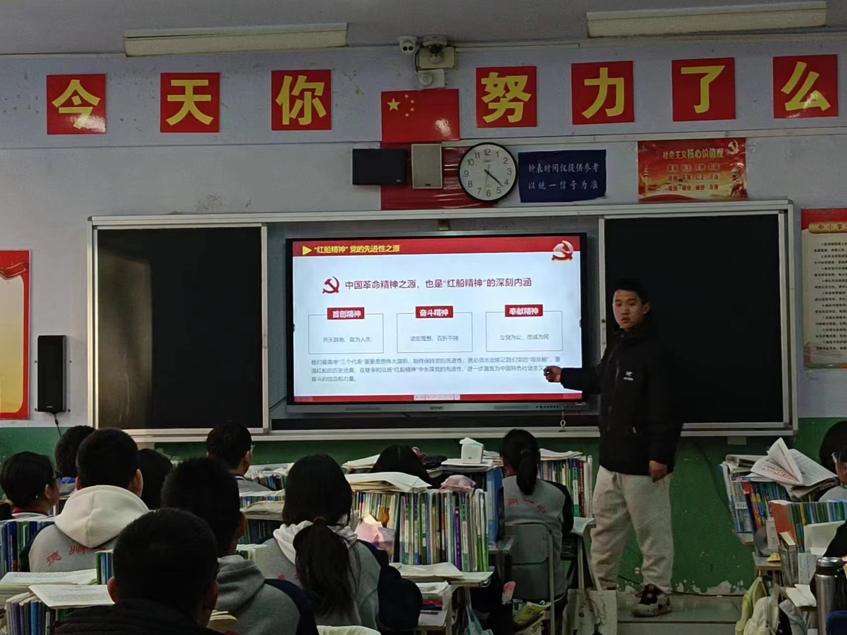 1月28日,本社会实践团成员闫智强走进校园,为同学们讲解了“红色故事”以及党的发展史,在青少年心中埋下了一颗种子,这颗种子随着时间的沉淀和知识的积累最终会生根发芽,长成参天大树成为祖国的栋梁之材,为中国式现代化而不懈奋斗,为中华民族伟大复兴而不断努力。