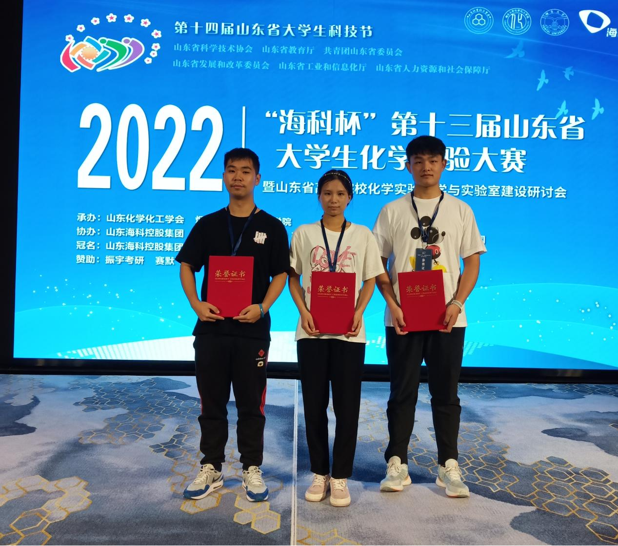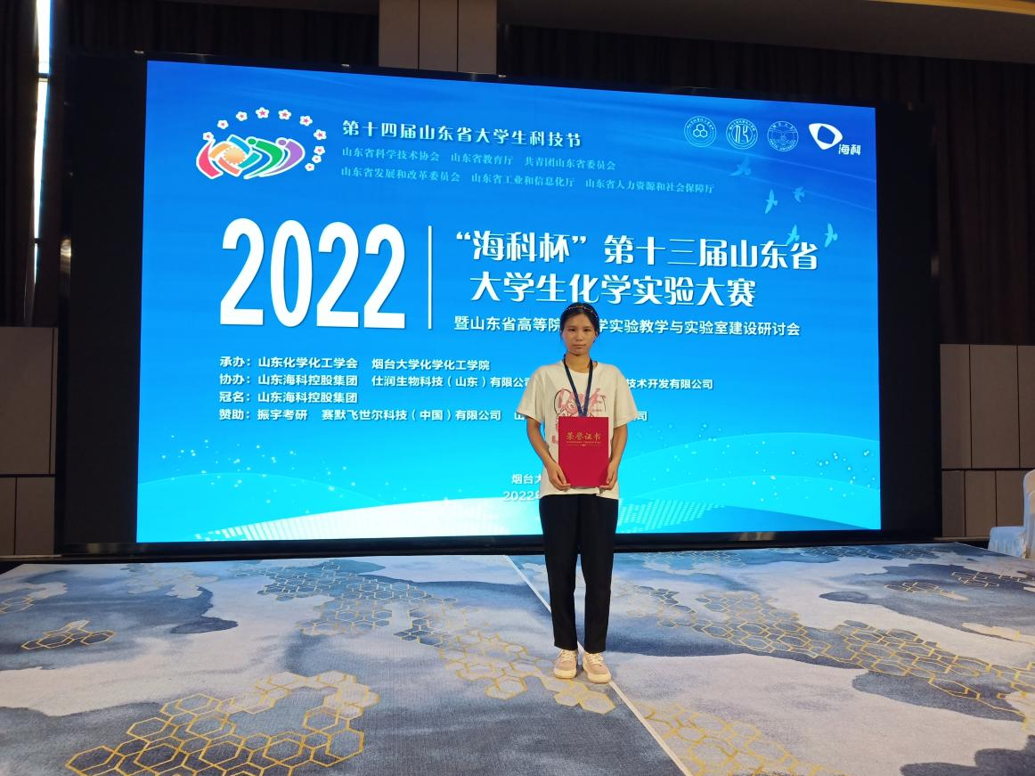 8月14日至17日,“海科杯”第十三届山东省大学生化学实验大赛暨山东省高等院校化学实验教学与实验室建设研讨会于烟台大学举行,青岛农业大学45分钟过瘾拔萝卜视频2019级3名同学参赛,学院孔祥平、颜世海和王辉老师分别指导无机及分析化学实验、物化实验和有机实验。经过积极准备,药学专业李悦获得比赛一等奖,应用化学专业赵琛和功能材料专业公延峰获得比赛三等奖。