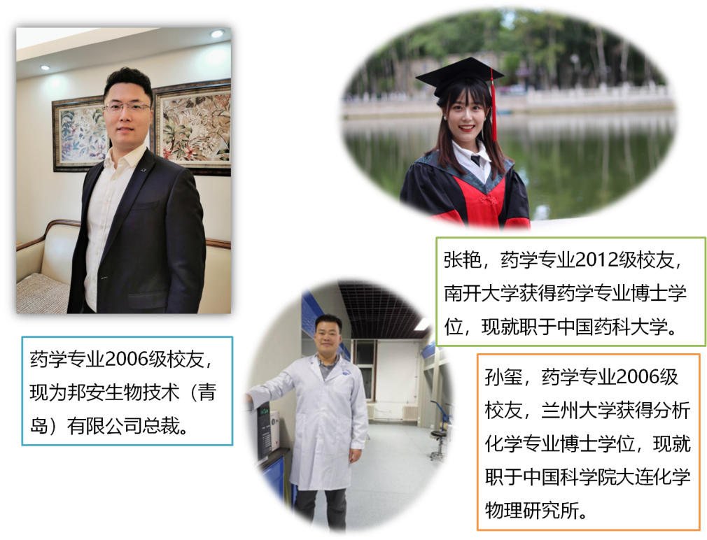 就业方向:药学专业近三年考研率达到20%以上,最高达到58.57%;近三年就业率均达到90%以上。考研学校包括南开大学、江南大学、南京大学、山东大学、中国农业大学、浙江大学、贵州大学、沈阳医科大学等国内高等学府。就业企业有药明康德、齐鲁制药、鲁南制药、山东联合、青岛海利尔、深圳诺普信等医药和农药企业。