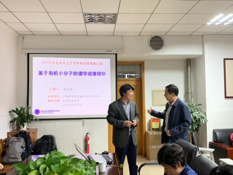 2019年10月10日,逯乐慧研究员一行6人莅临课题组指导,逯乐慧研究员以《基于有机小分子的谱学成像探针》为题,系统介绍了在国家重大战略需求下,针对癌症早期诊断和治疗,如何构建集靶向和成像功能的生物可降解纳米探针及CT成像造影探针。会后逯乐慧研究员一行对实验室进行了参观指导。