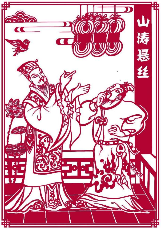 山涛悬丝:山涛为官三十余年,宠辱不惊,始终以清廉简约安身立命,从不收受他人的礼物。他担任吏部尚书时,前来请托送礼的人络绎不绝,但无一不被他当面拒绝,灰溜溜地离去。县令袁毅心生一计,趁山涛不在,偷偷地给山涛家送去百余斤真丝。山涛回家得知后,无可奈何,只得命令家人将这些真丝悬挂于梁上而不用。后来,袁毅劣迹败露,朝廷得知他曾送真丝给山涛,派人到山涛府上查询,只见那百斤真丝仍悬挂在梁上,虽已为虫蛀食,但尘埃封印如故,众人不禁钦佩山涛为官清廉,因而送了他一个雅号——“悬丝尚书”。